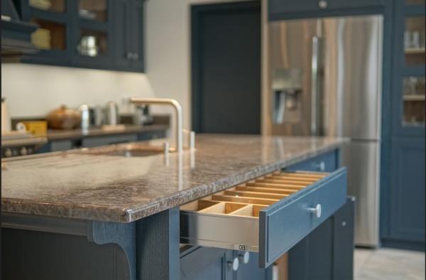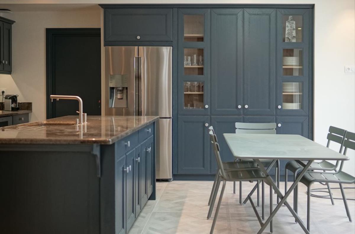 En esta cocina, el cliente buscaba maximizar el espacio de almacenaje y contar con una nevera de gran capacidad. Deseaba mantener la calidez de la madera, pero con un estilo renovado, contemporáneo y lleno de personalidad. El resultado combina funcionalidad y diseño actual en un ambiente acogedor y muy práctico
